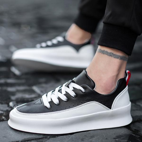 Item Type:?Leather SneakersPattern Type:?SolidUpper Material:?PUFeature:?Waterproof, BreathableClosure Type:?Lace-UpLining Material:?TextileFit:?Fits true to sizeOutsole Material:?RubberInsole Material:?Fabric