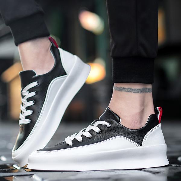Item Type:?Leather SneakersPattern Type:?SolidUpper Material:?PUFeature:?Waterproof, BreathableClosure Type:?Lace-UpLining Material:?TextileFit:?Fits true to sizeOutsole Material:?RubberInsole Material:?Fabric